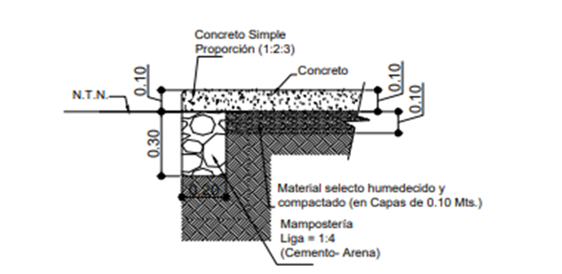 - Debe considerarse el diente/dado de mampostería de 30x20 cms dentro del ítem de acera perimetral tal y como lo indica el plano?