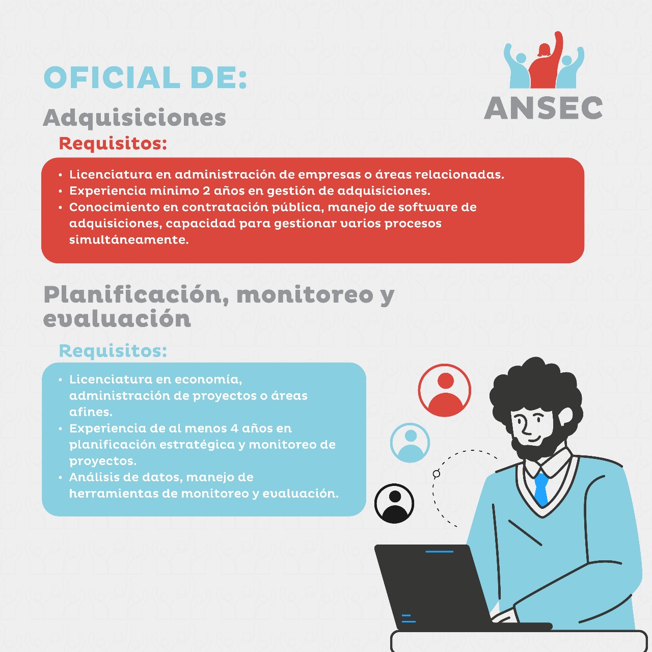 La Administración Nacional de Servicio Civil, enmarcándose en los Artículos 63 y 64 del Reglamento de la Ley de Servicio Civil, abre la convocatoria para las siguientes vacantes:
