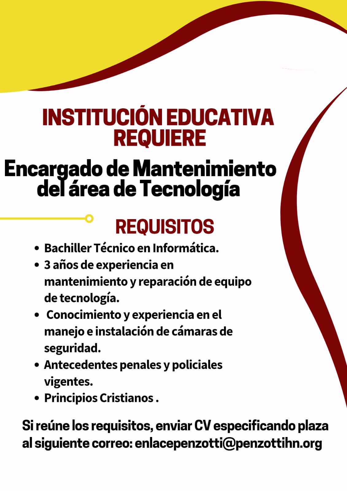 - 3 años de experiencia en mantenimiento y reparación de equipo de tecnologia
