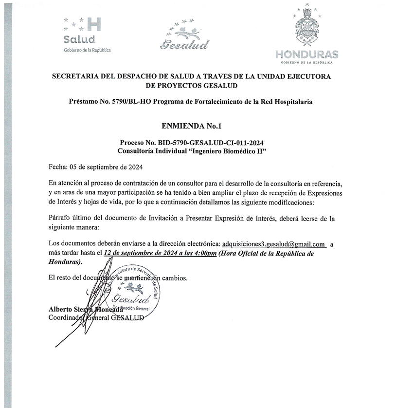 El 30 de noviembre del año 2023, se firmó el Contrato de Préstamo No. 5790/BL-HO, entre la República de Honduras y el Banco Interamericano de Desarrollo (BID), para desarrollar el Programa de Fortalecimiento de la Red Hospitalaria, con el objetivo de mejorar la efectividad y el acceso a los servicios especializados hospitalarios materno-infantiles, de atención a Lesiones de Causa Externa (LCE) y a complicaciones de Enfermedades No Transmisibles (ENT).