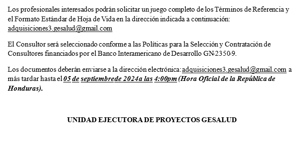 - Apoyar a la Unidad Técnica de Infraestructura (UTINH) y la Unidad Ejecutora de proyectos (UEP) en la elaboración de especificaciones técnicas, términos de referencia y documentos de licitación para los proyectos hospitalarios.