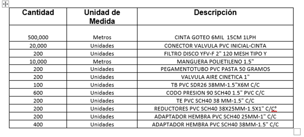 - La propuesta se debe presentar a todo costo: Esto implica que en la propuesta económica se deben tener en cuenta todos los costos asociados al servicio incluida la instalación e impuestos. Esto hace referencia a la asesoría técnica para la instalación de dos tanques y dos sistemas de riego por goteo.