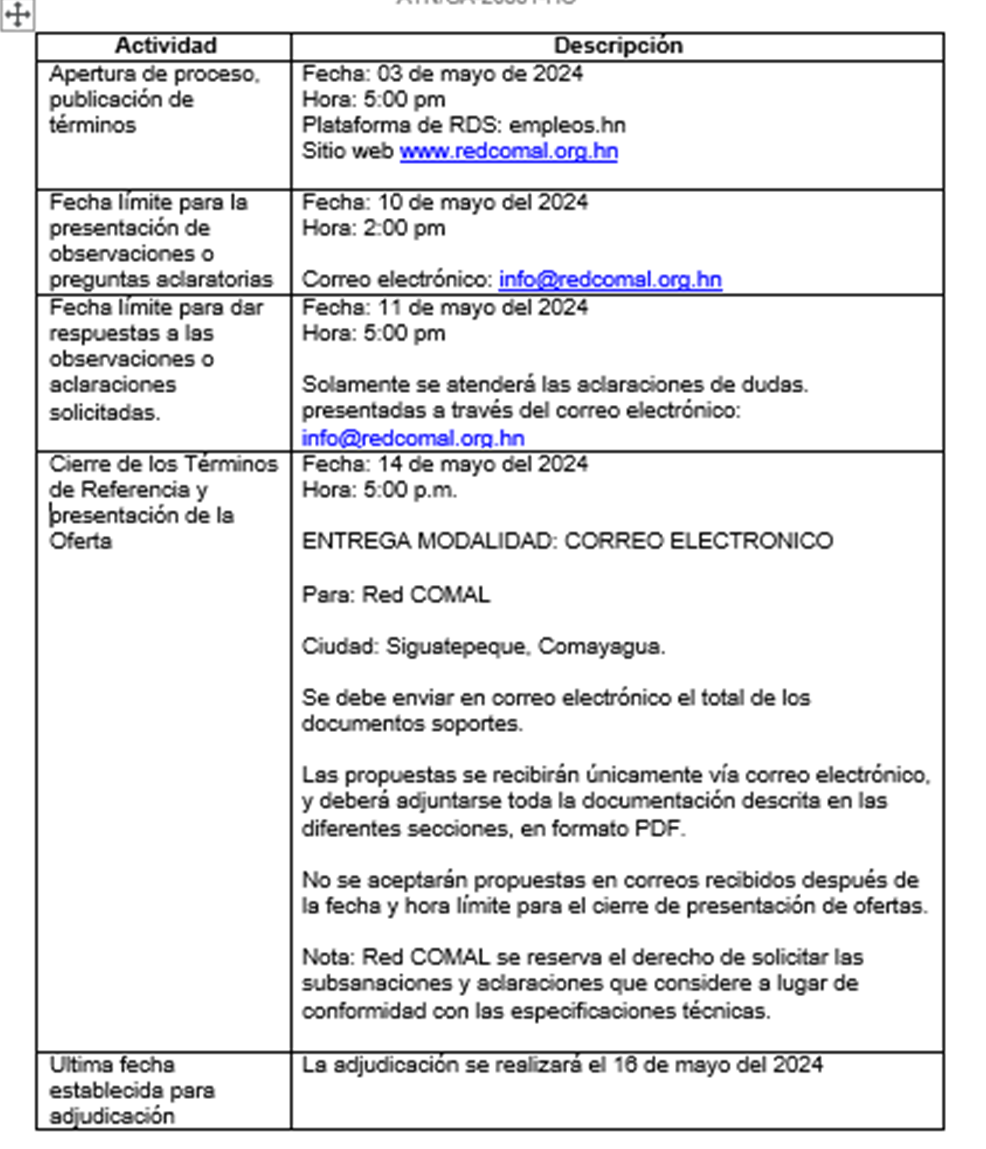 Los materiales deberán ser entregados a la Red COMAL a más tardar el 31 de mayo del 2024