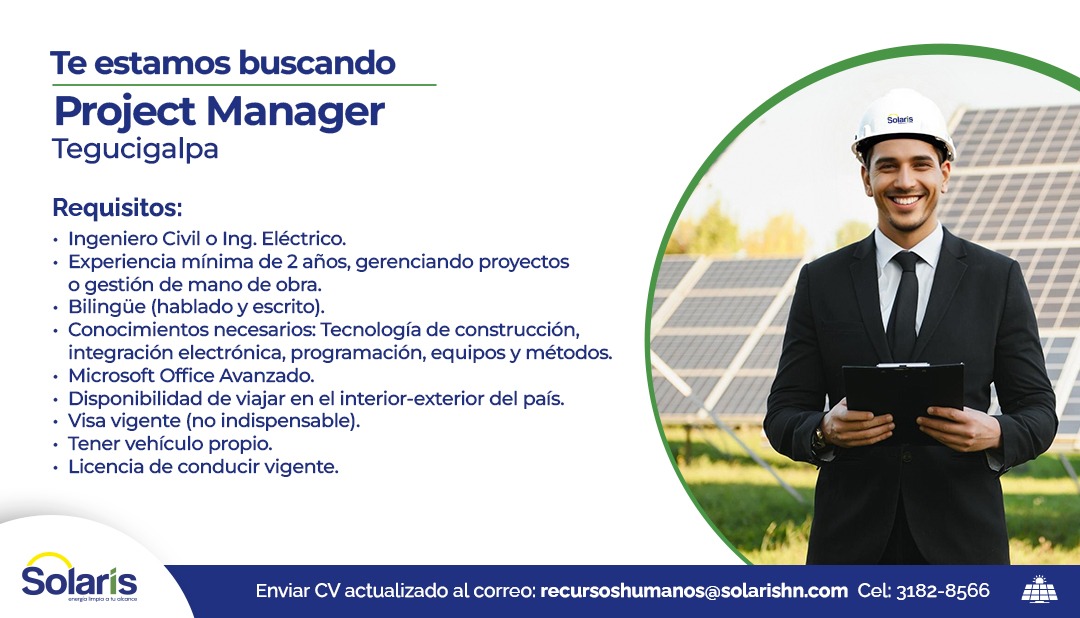 -Experiencia minimo de 2 años , gerenciando proyectos o gestión de mano de obra.