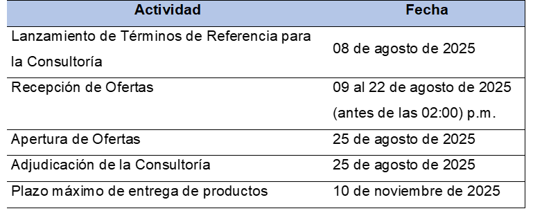 ✔ Plan de trabajo y cronograma de actividades específicas de la consultoría, mismo que