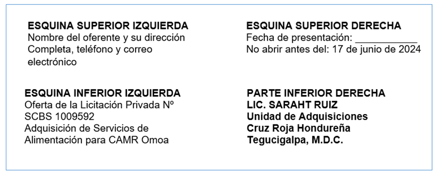 Los oferentes entregaran sus ofertas en documento físico en sobres cerrados y sellados. El sobre o paquete exterior deberá ser rotulados de la siguiente manera: