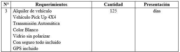 PROCESO DE ADQUISICIÓN DE ALQUILER DE VEHÍCULO:
