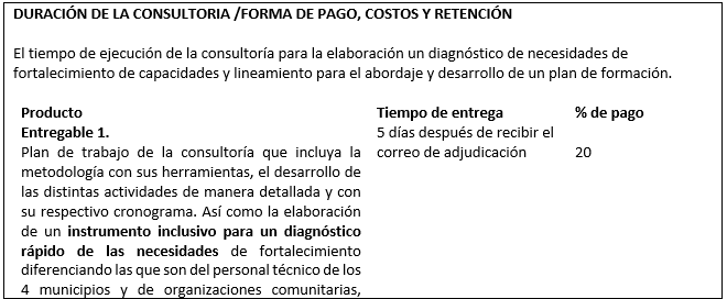NOMBRE DE CONSULTORÍA: Elaboración de un plan de formación con recursos educativos por módulos y guías para los facilitadores resultado de un diagnóstico rápido sobre el grado de conocimiento, interés y necesidades a nivel comunitario y municipal de forma diferenciada.