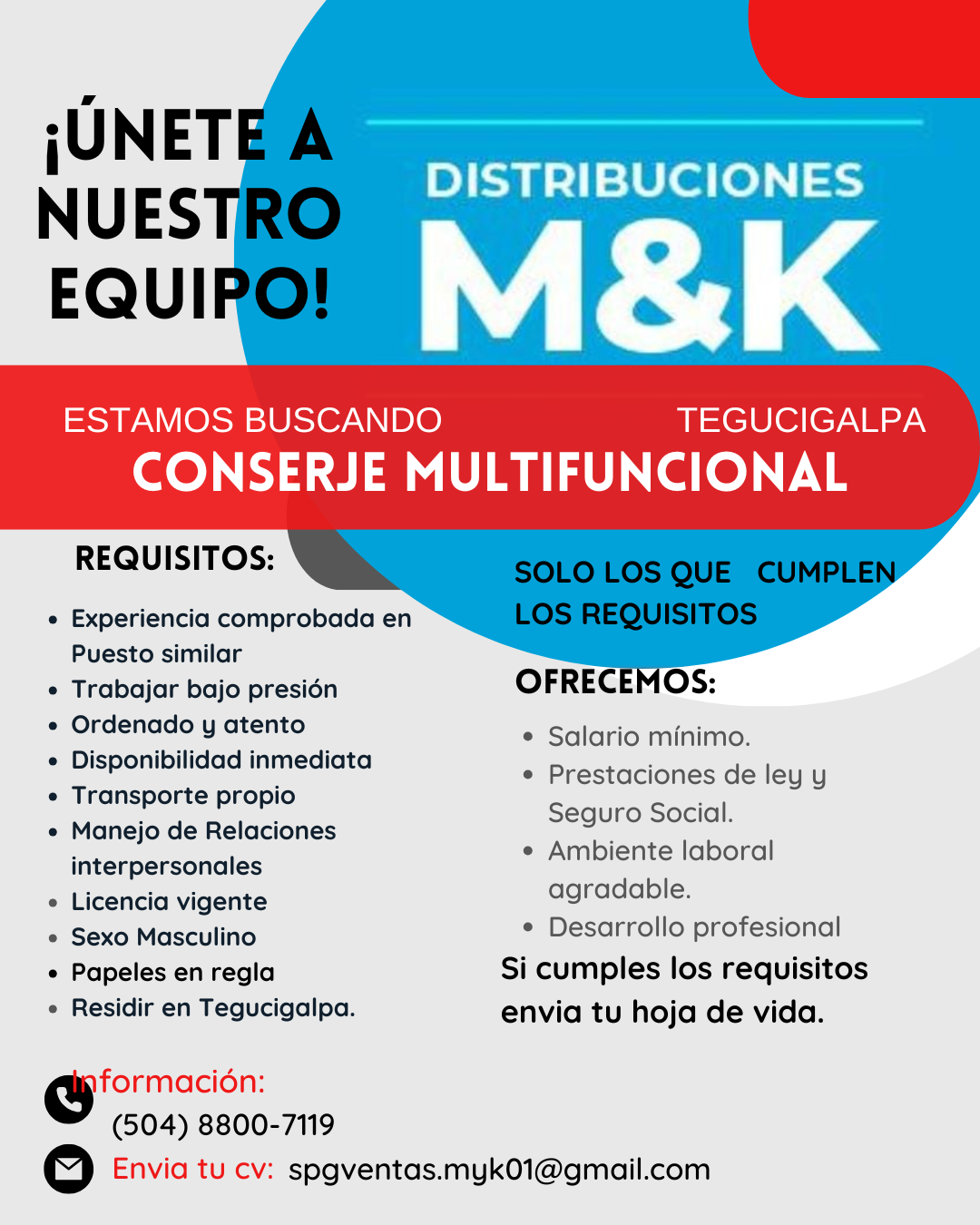 •Experiencia mínima de 2 años en puesto similares.