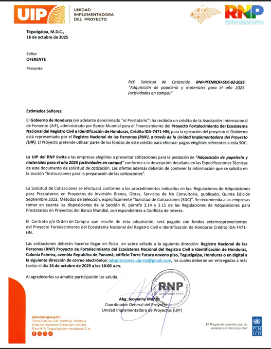 Invitación a cotizar, Proceso Nº: UAFCE-FM-TB-039-2025