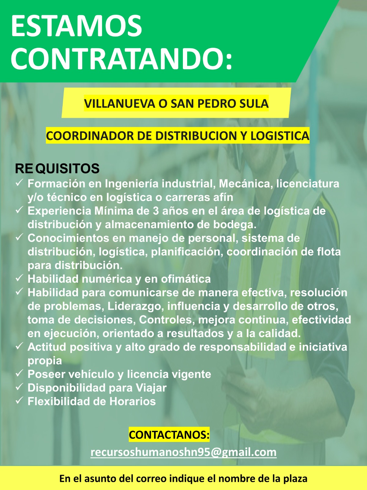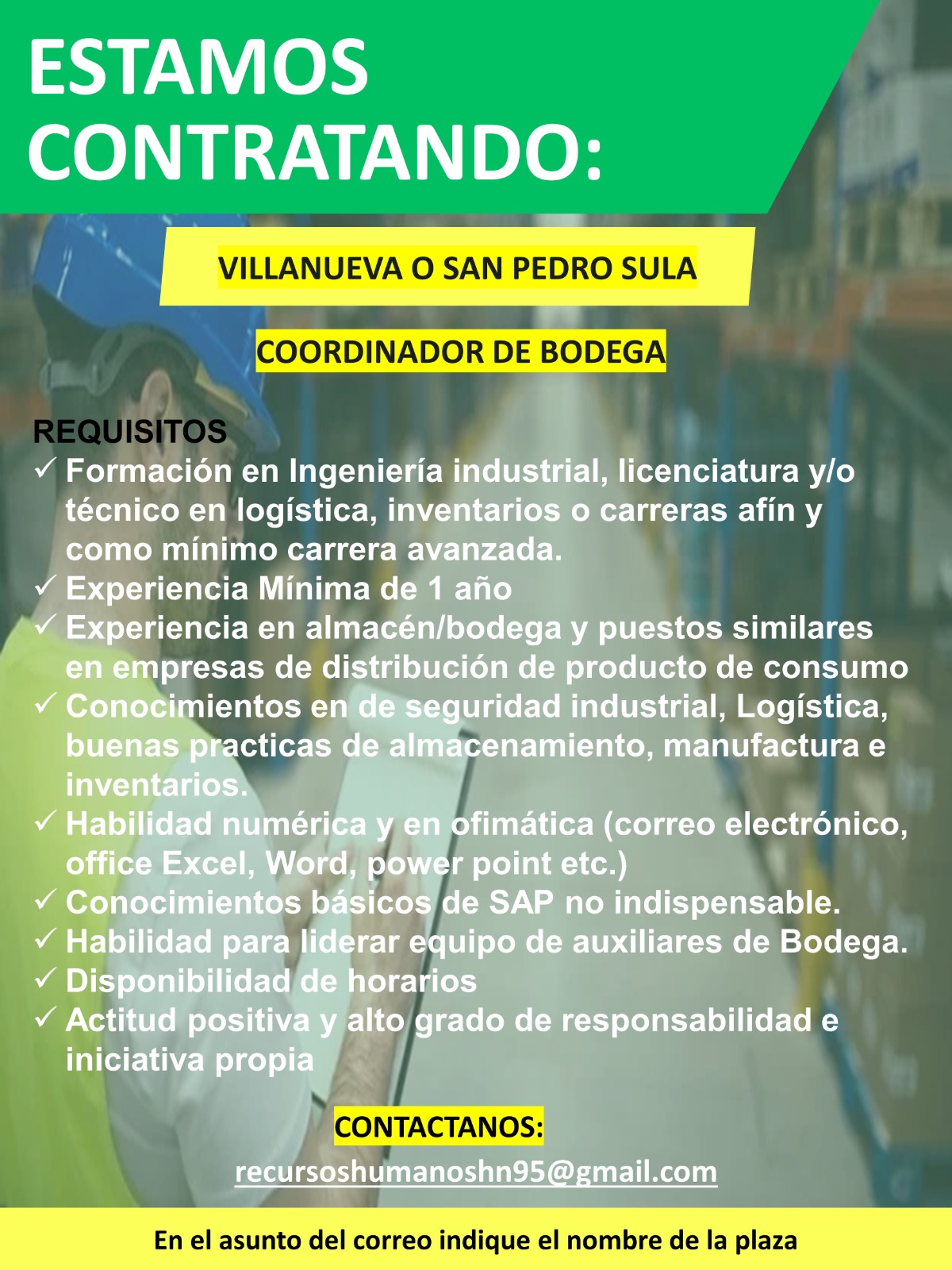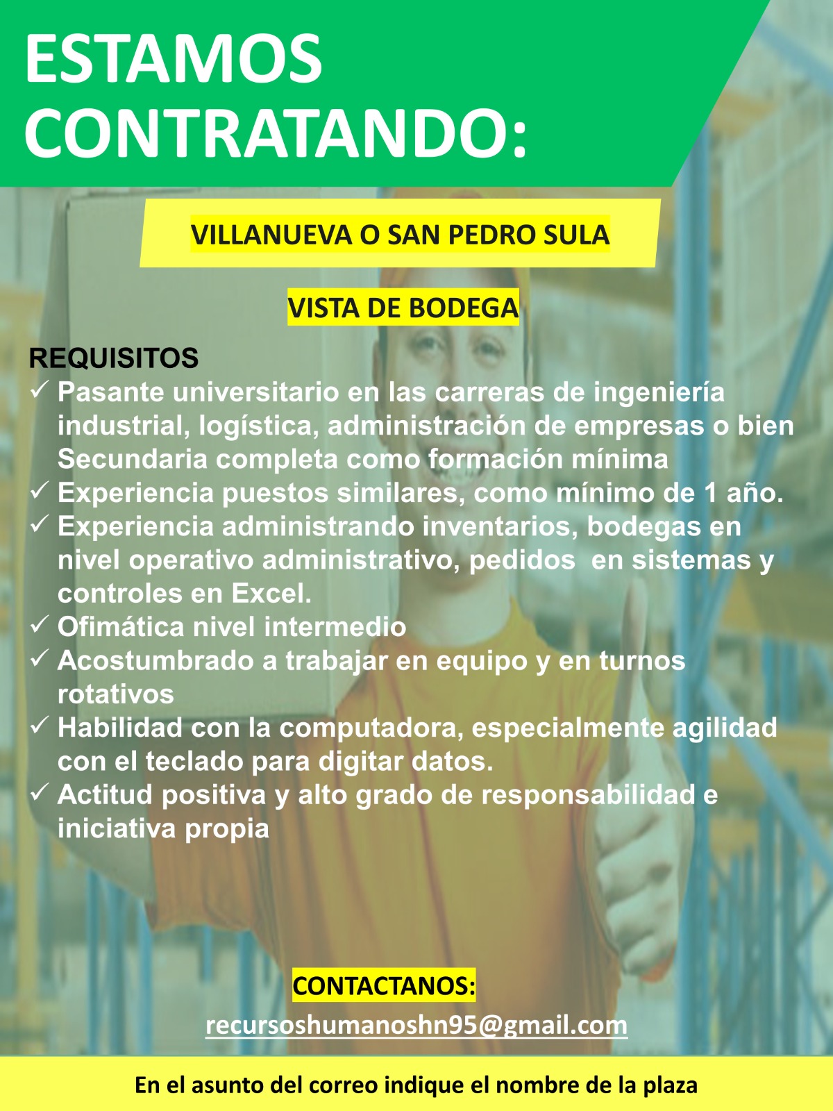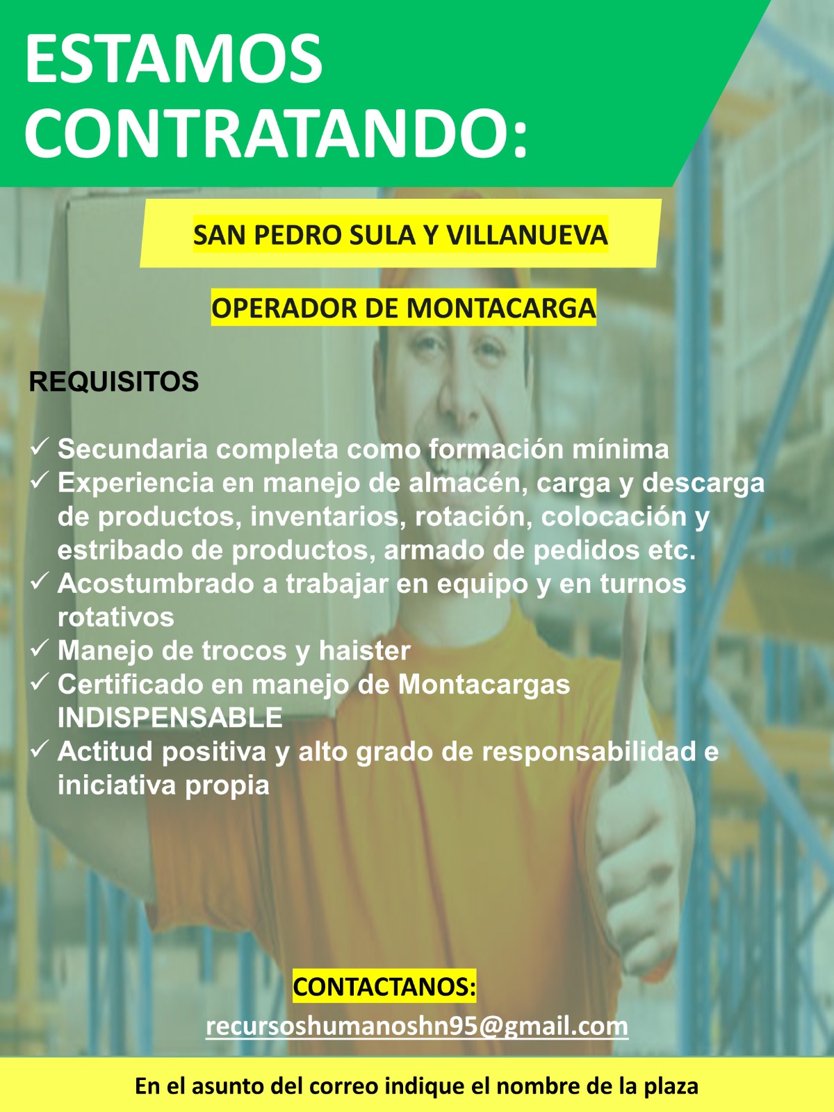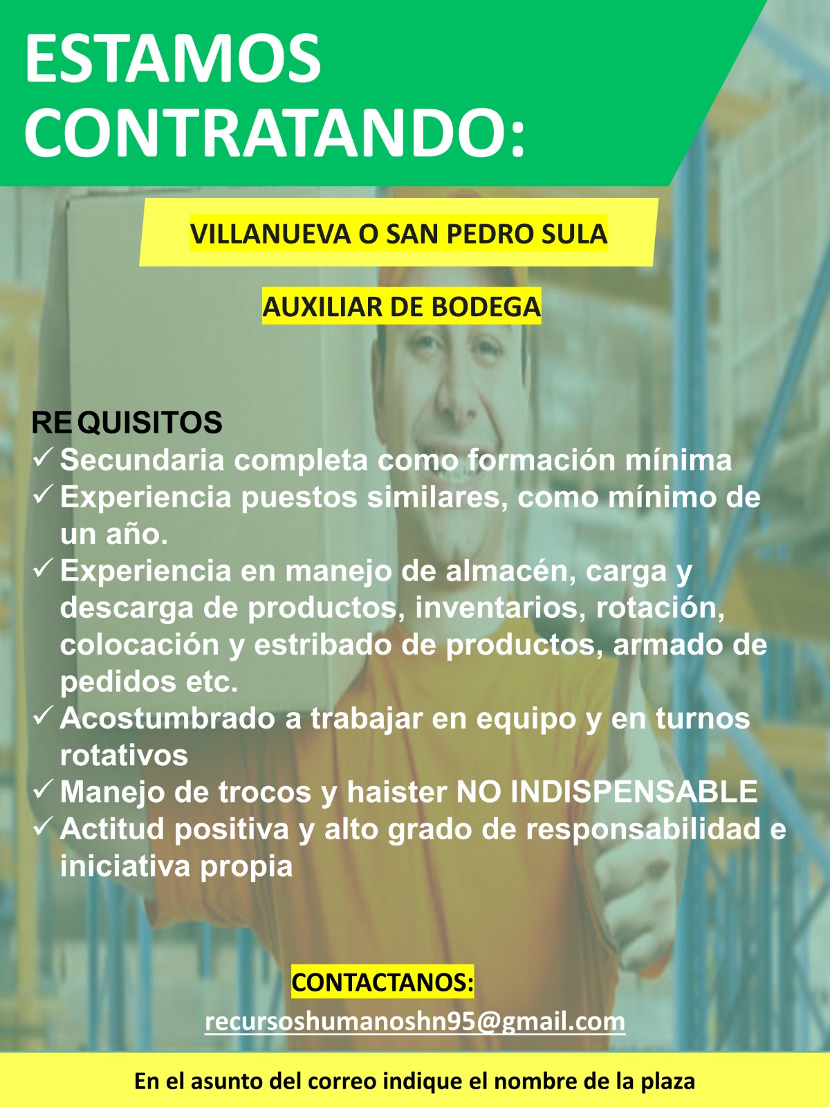 El candidato deberá ser ciudadano hondureño o contar con permiso de trabajo en el país vigente al momento de la aplicación