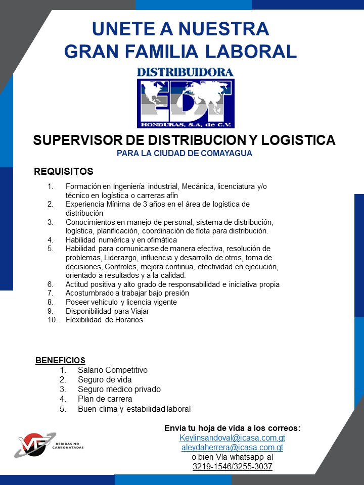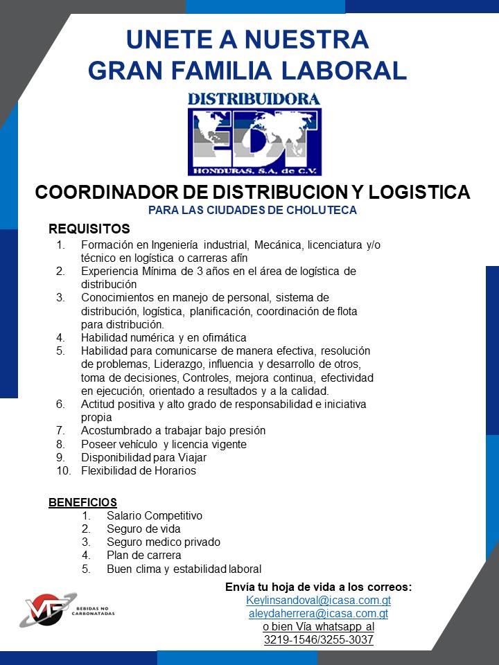 • Experiencia en traslado de producto, servicio al cliente y afines.