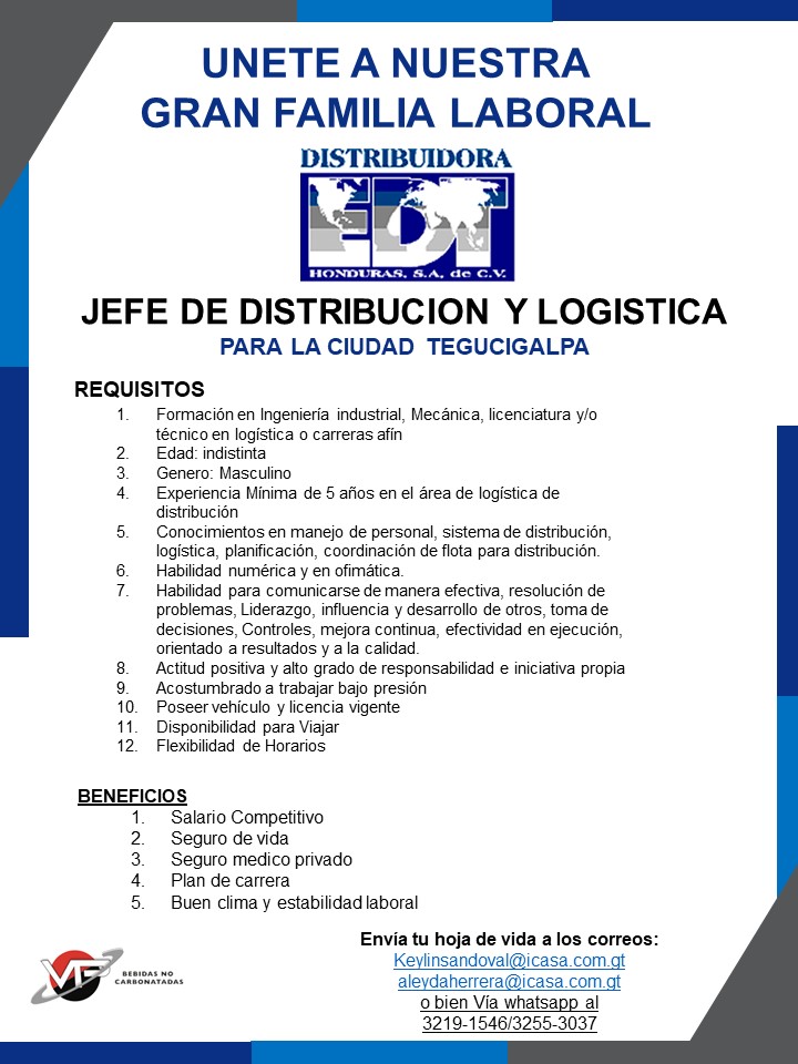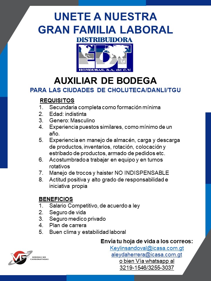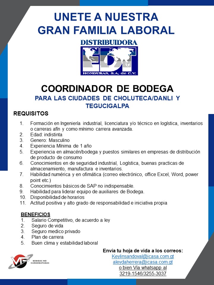 OFICIAL DE CADENA DE SUMINISTROS- TEGUCIGALPA