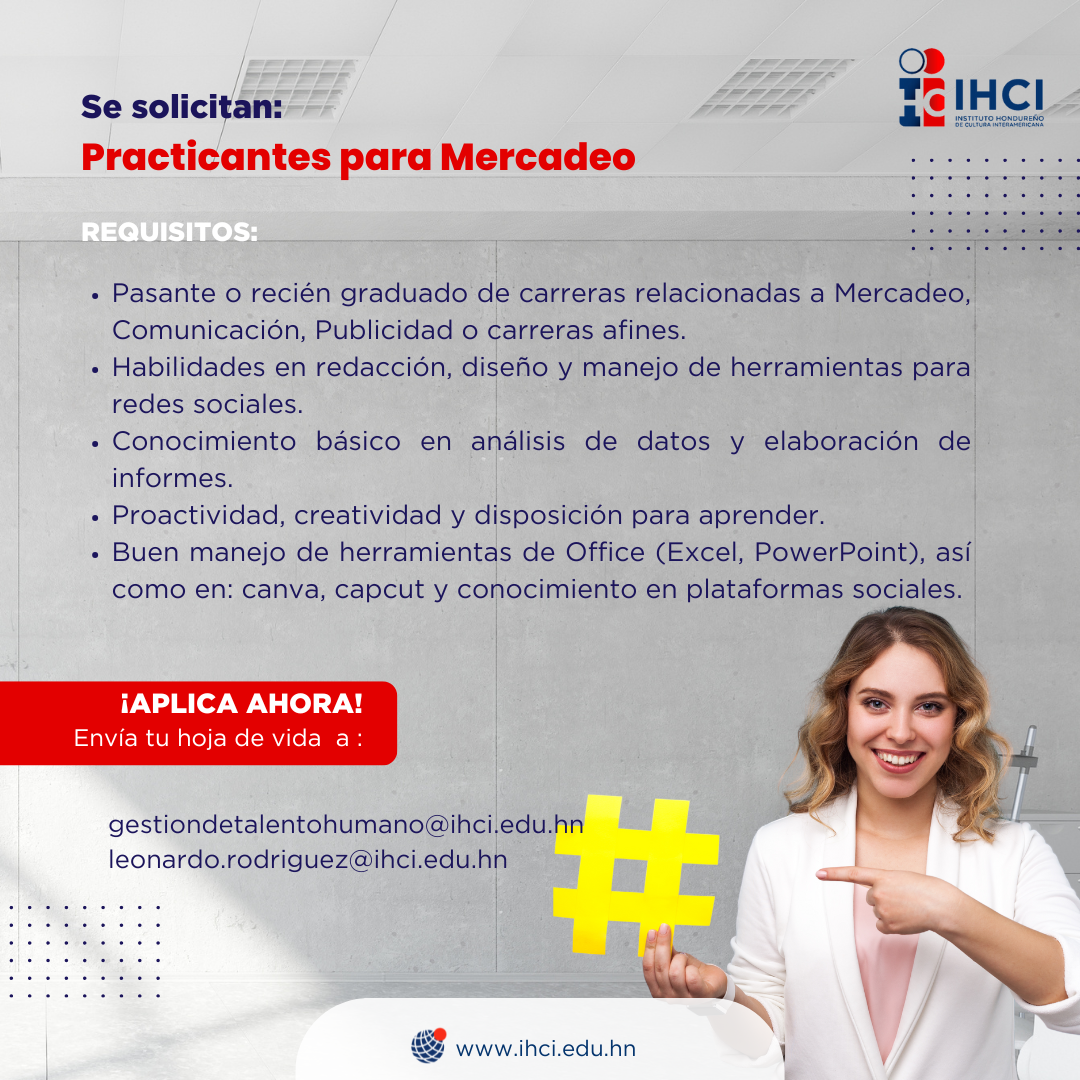 Si estas interesado en realizar tu practica profesional, envía tu hoja de vida al correo: [email protected] con el asunto ''Practica para Mercadeo''.
