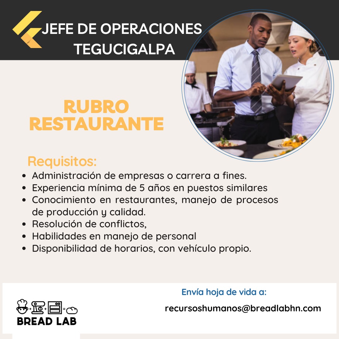Experiencia: Mínimo 2 años en puestos administrativos de preferencia en el rubro de restaurantes