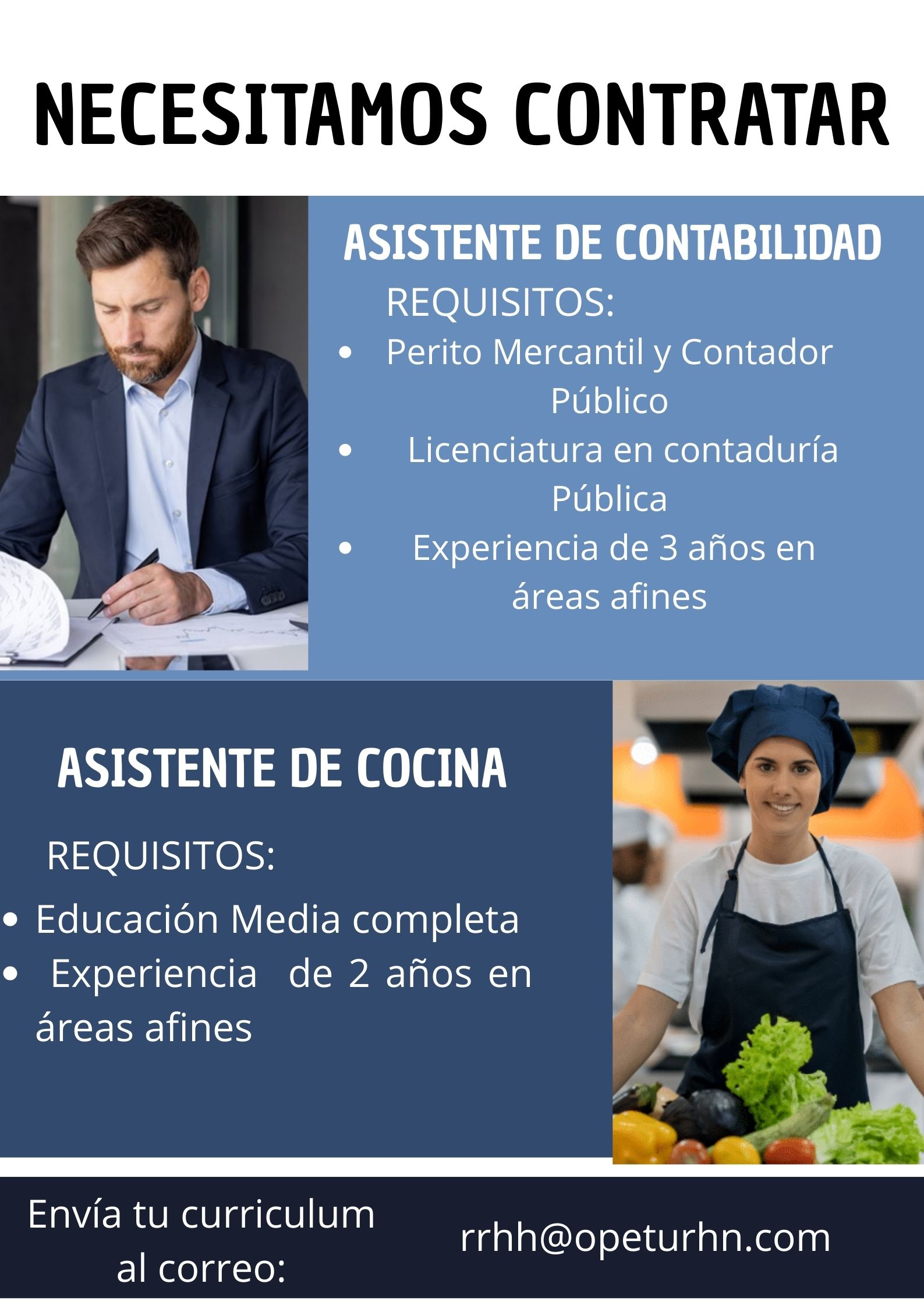 Compañía Fomento de Barbareta está contratando a un Cocinero para apoyar las tareas básicas de la operación de cocina ejecutando instrucciones específicas bajo supervisión, garantizando limpieza, orden, apoyo en preparación de alimentos y cumplimiento de normas de seguridad e higiene para el correcto servicio de alimentación.